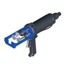 專門用于150ml Plas-Pak型膠筒的雙組份氣動膠槍用于150ml 1:1 (75+75ml) Plas-Pak 固定比率雙聯膠筒工作氣壓為6.8 bar時有2.20kN (220kgf)的推力重量1570g氣動復位為可選配置自動定心盤